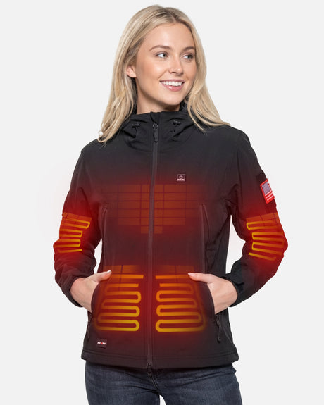 Women's Soft Shell Heated Jacket Detachable Hood With 12V Battery Pack - Black