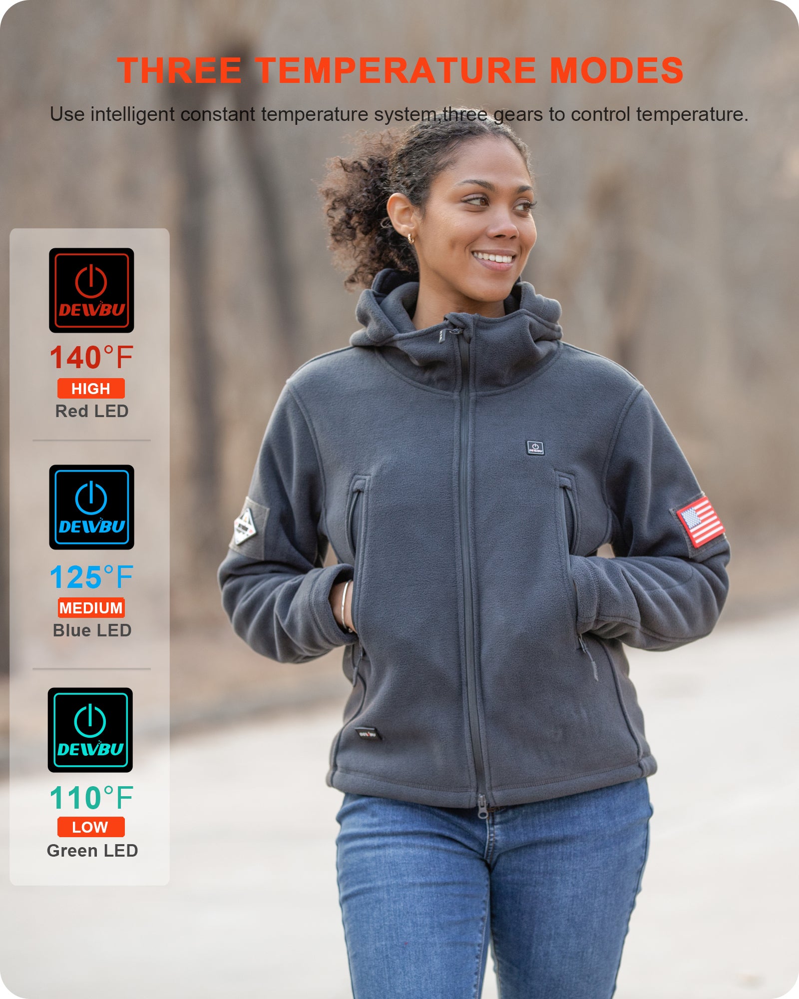 Women's Polar Fleece Heated Jacket With 12V Battery Pack - Grey