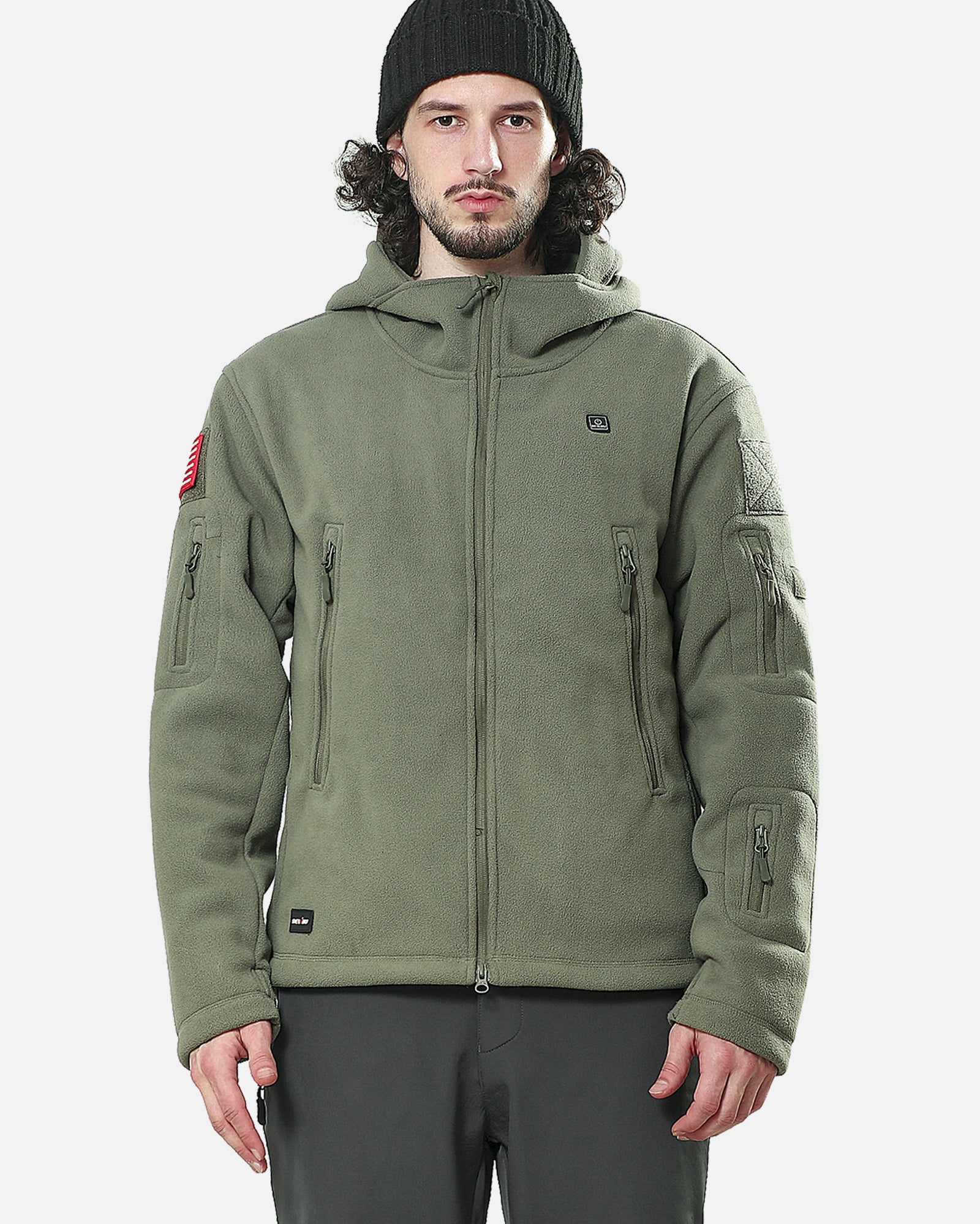 Men's Polar Fleece Heated Jacket With 12V Battery Pack - Olive Green