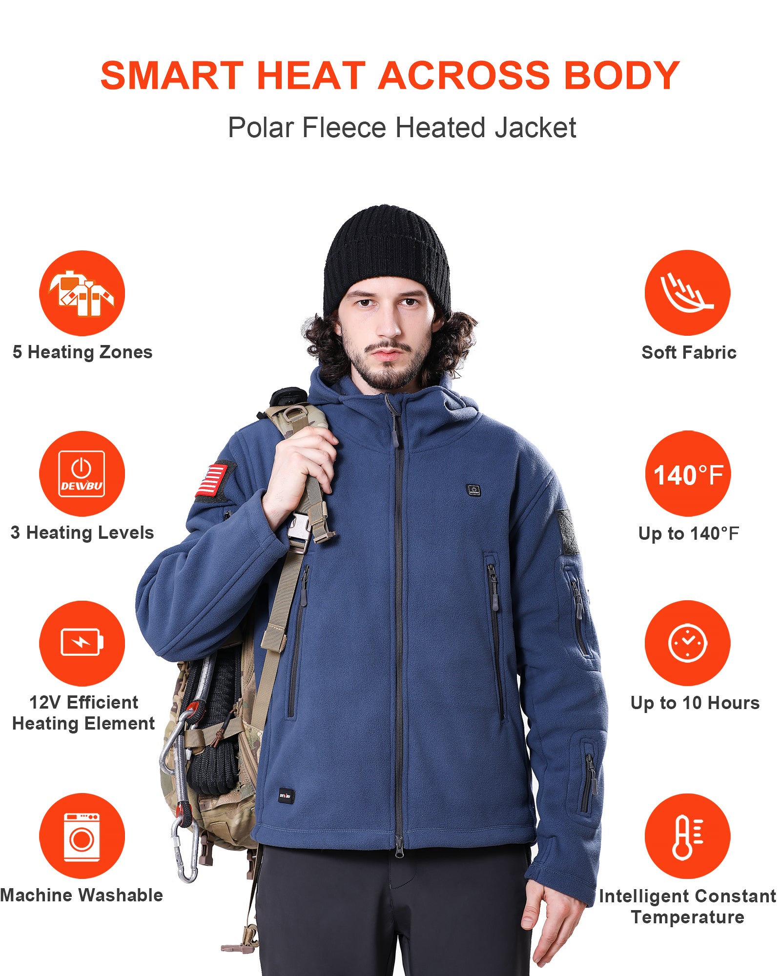 Men's Polar Fleece Heated Jacket With 12V Battery Pack - Blue Haze