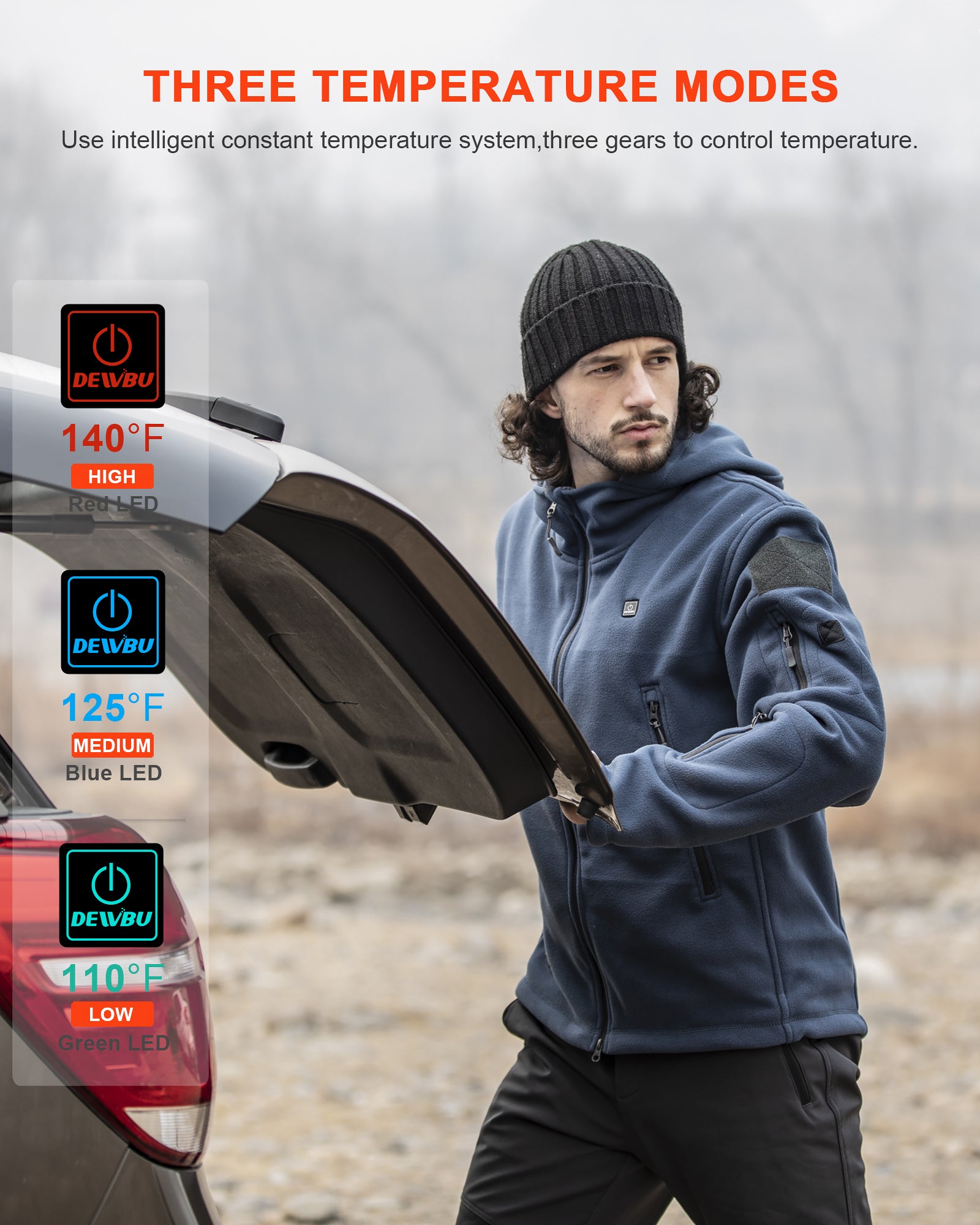DEWBU heated jacket uses a 12V power system, which can be connected to the portable power station, motorbike, boat, ATV, snowmobile, or any other vehicle through a DEWBU 12V connector wire (Connector Wire Sold by DEWBU Separately) to keep you warm in extremely cold winter without time limited.