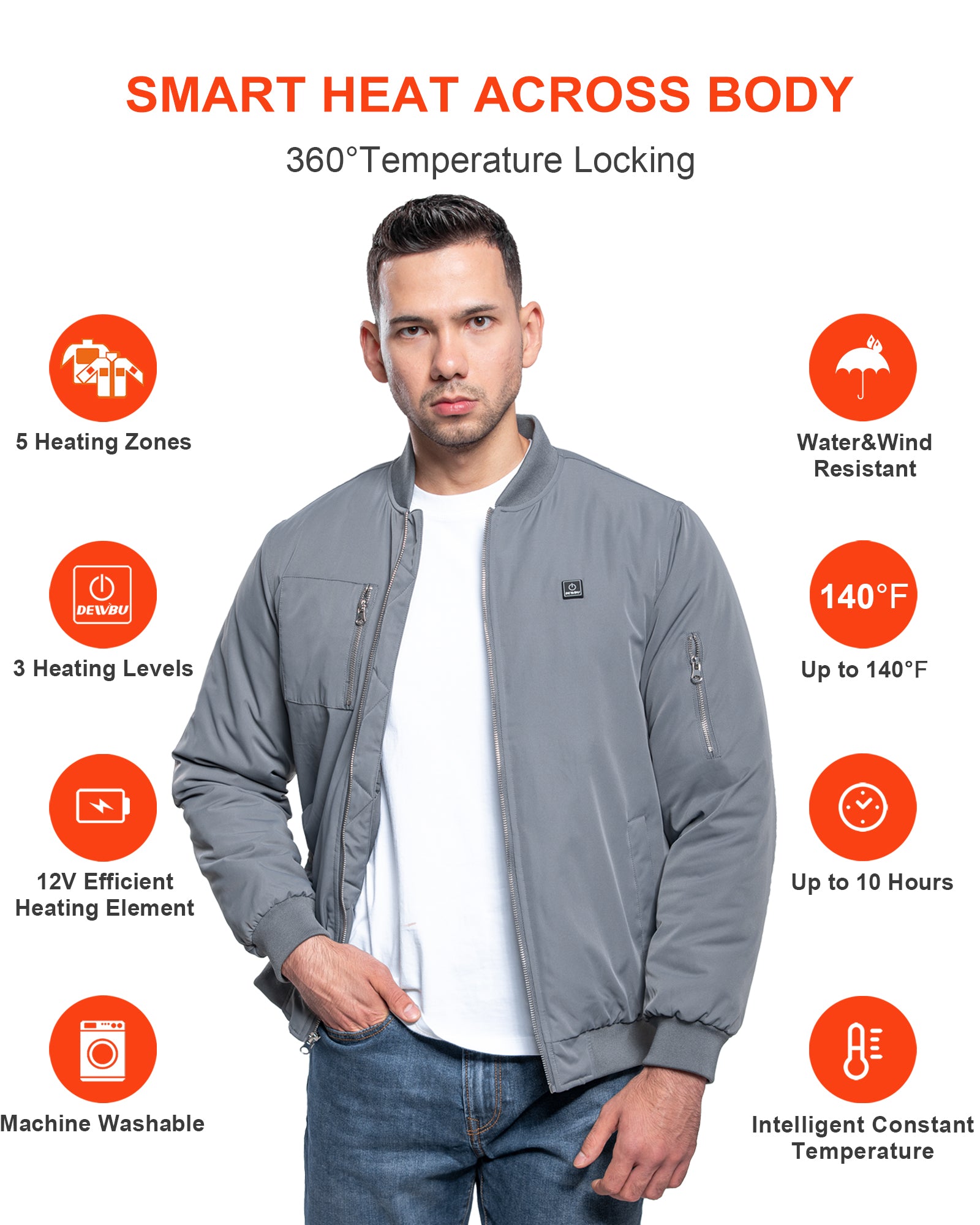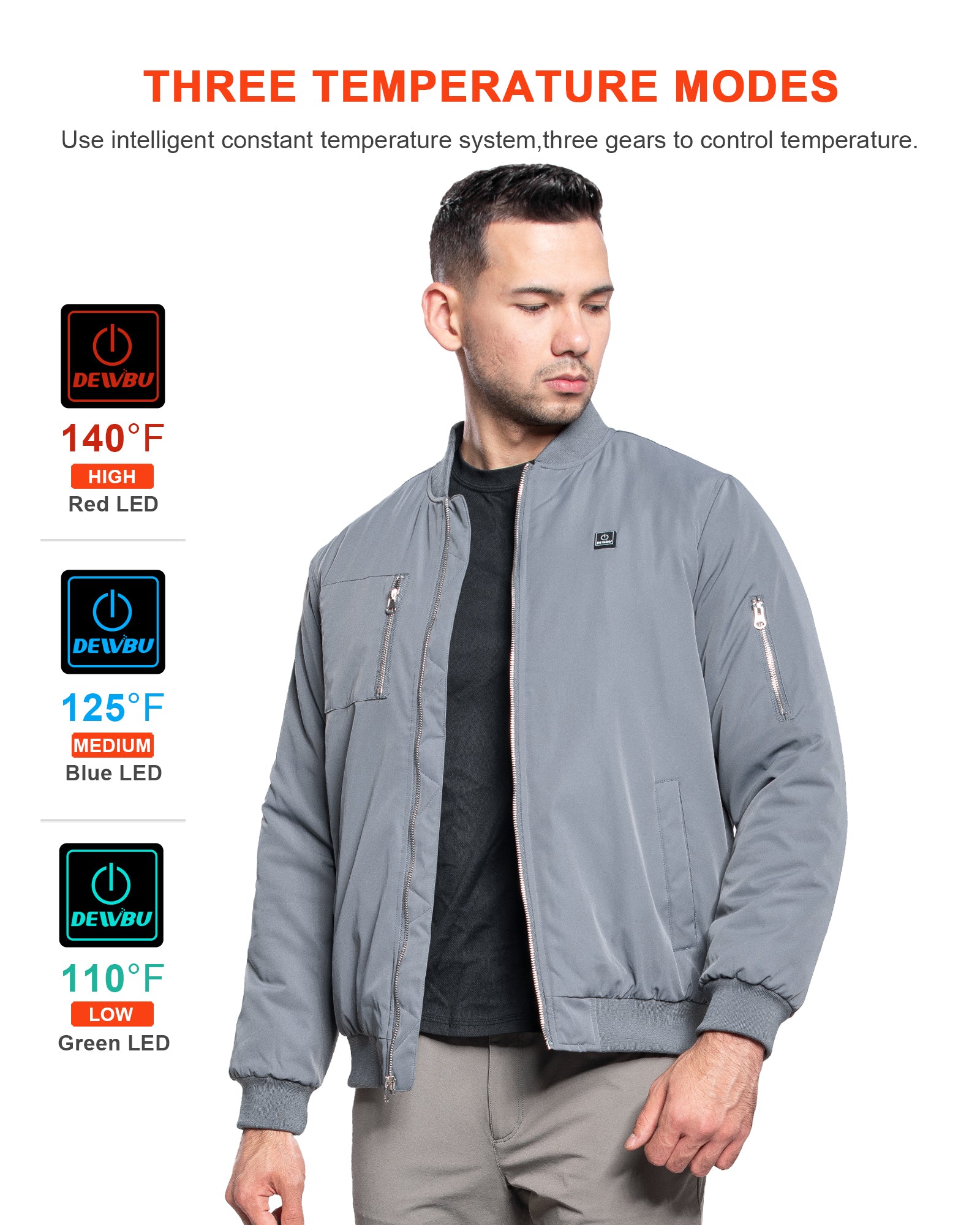 Men's Heated Bomber Padded Jacket with 12V Battery Pack -Grey