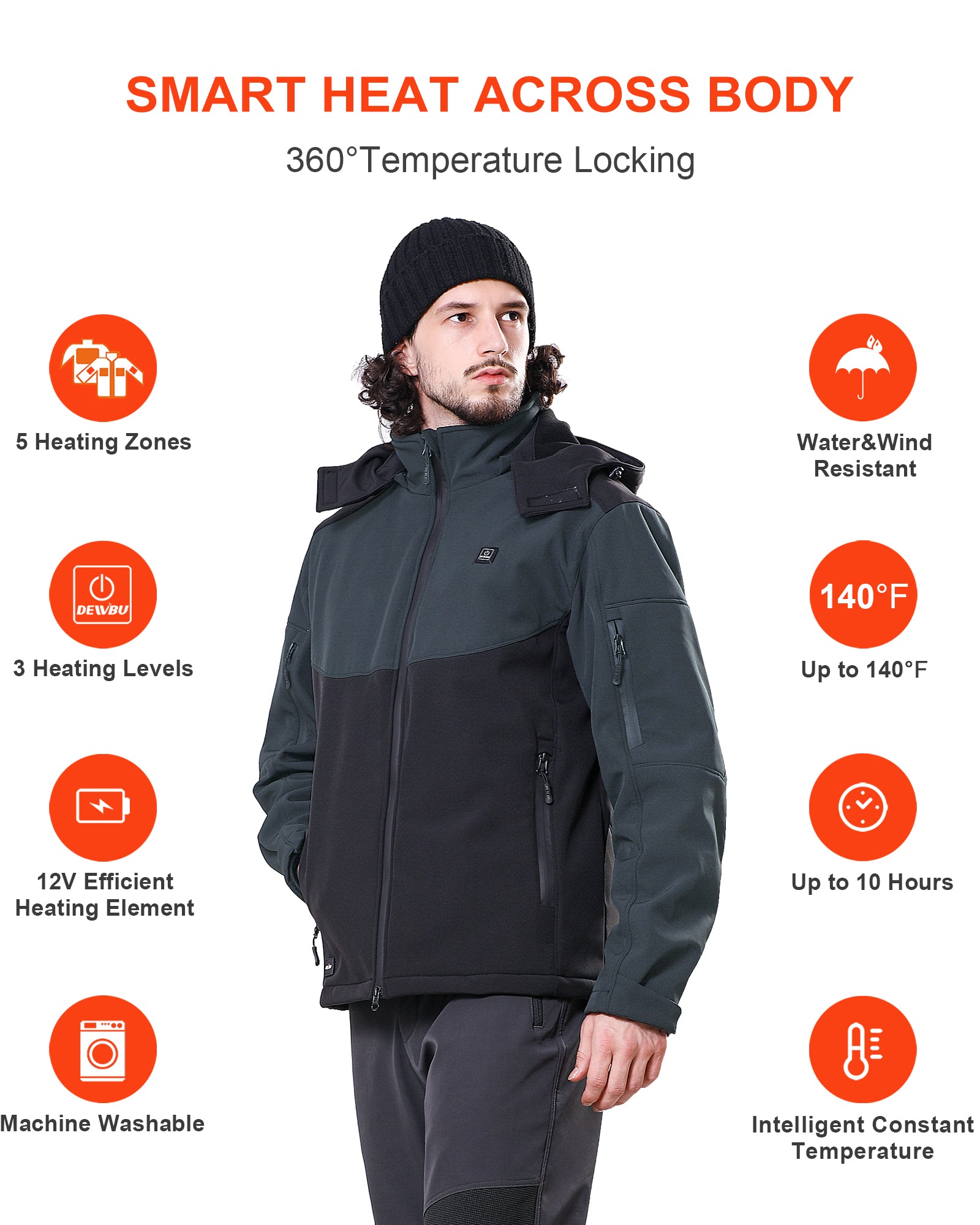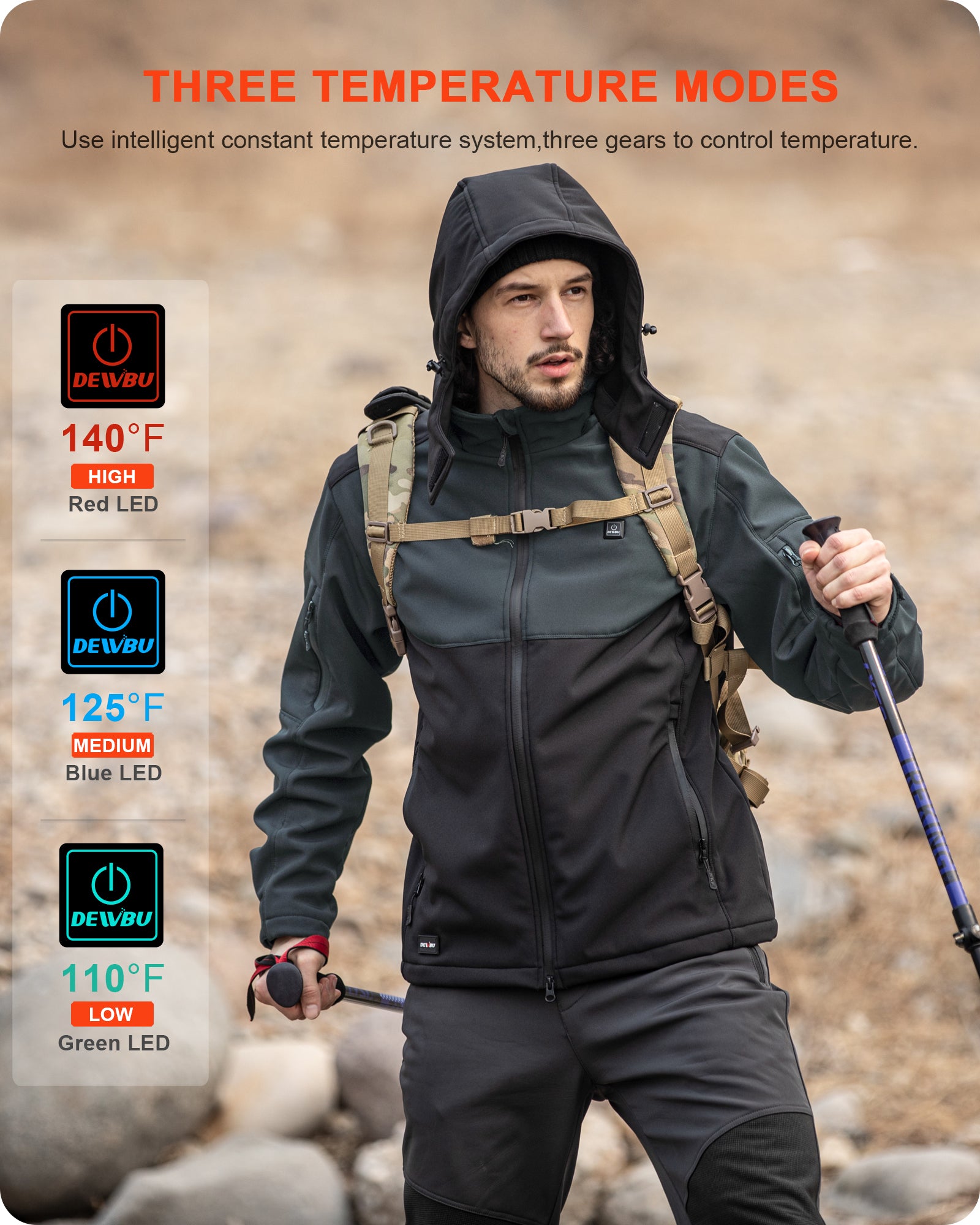 DEWBU heated coats are built with high-quality and professional water-resistant softshell materials and a waterproof zipper. They also have good tensile strength, scratch resistance, and wind resistance. Heating elements and overall jacket structure are designed to endure routine hand or machine wash.
