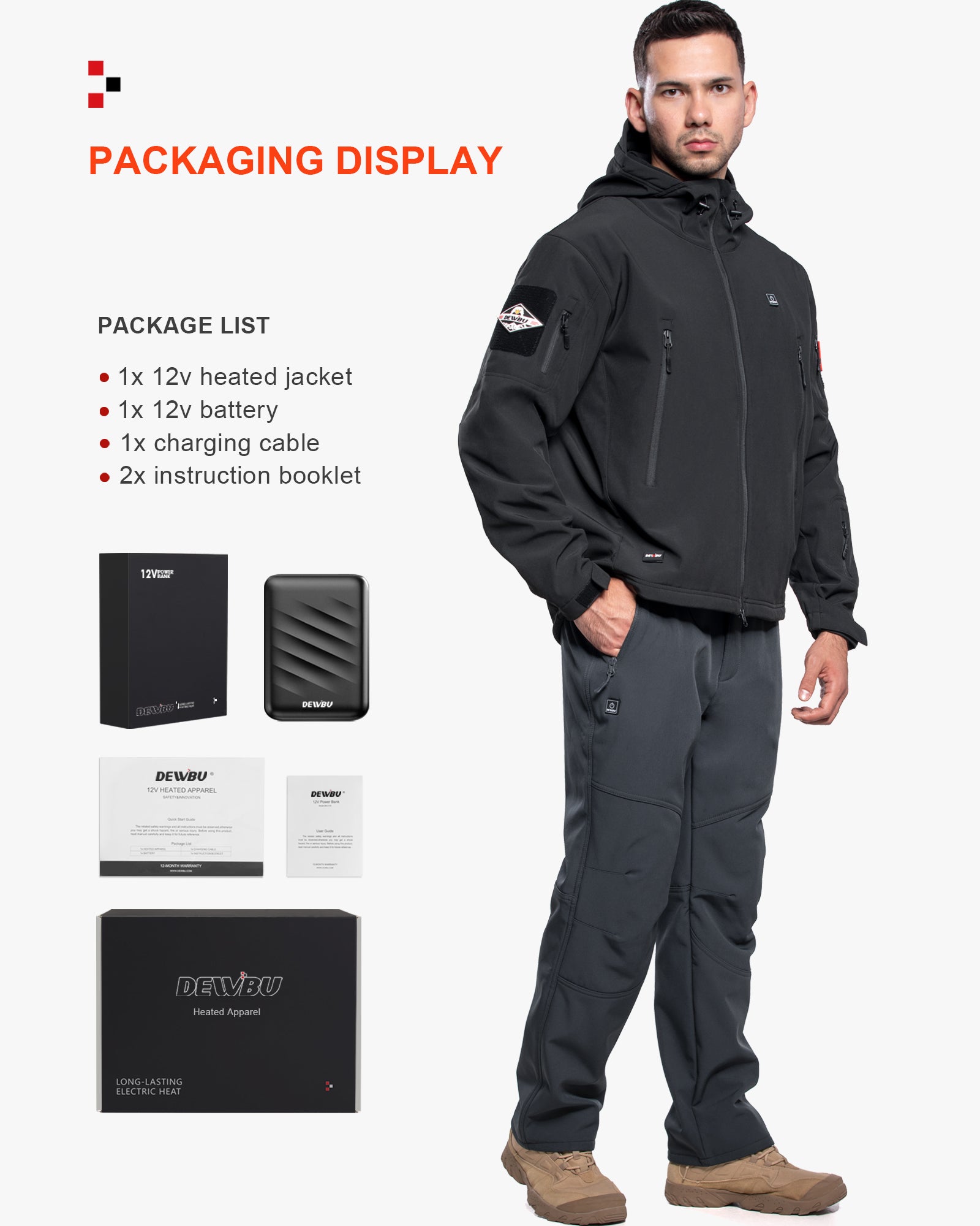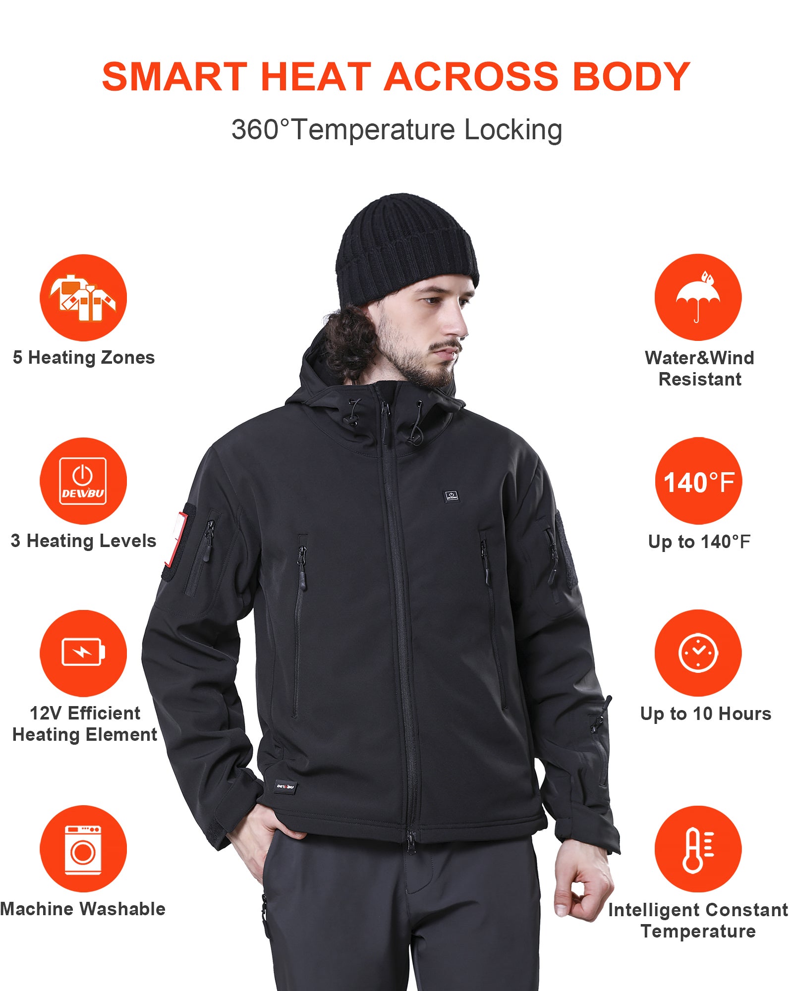 DEWBU heated coats are built with high-quality and professional water resistant soft shell materials with excellent breathability. They also have good tensile strength, scratch resistance and wind resistance. Heating elements and overall jacket structure are designed to endure routine hand or machine wash.