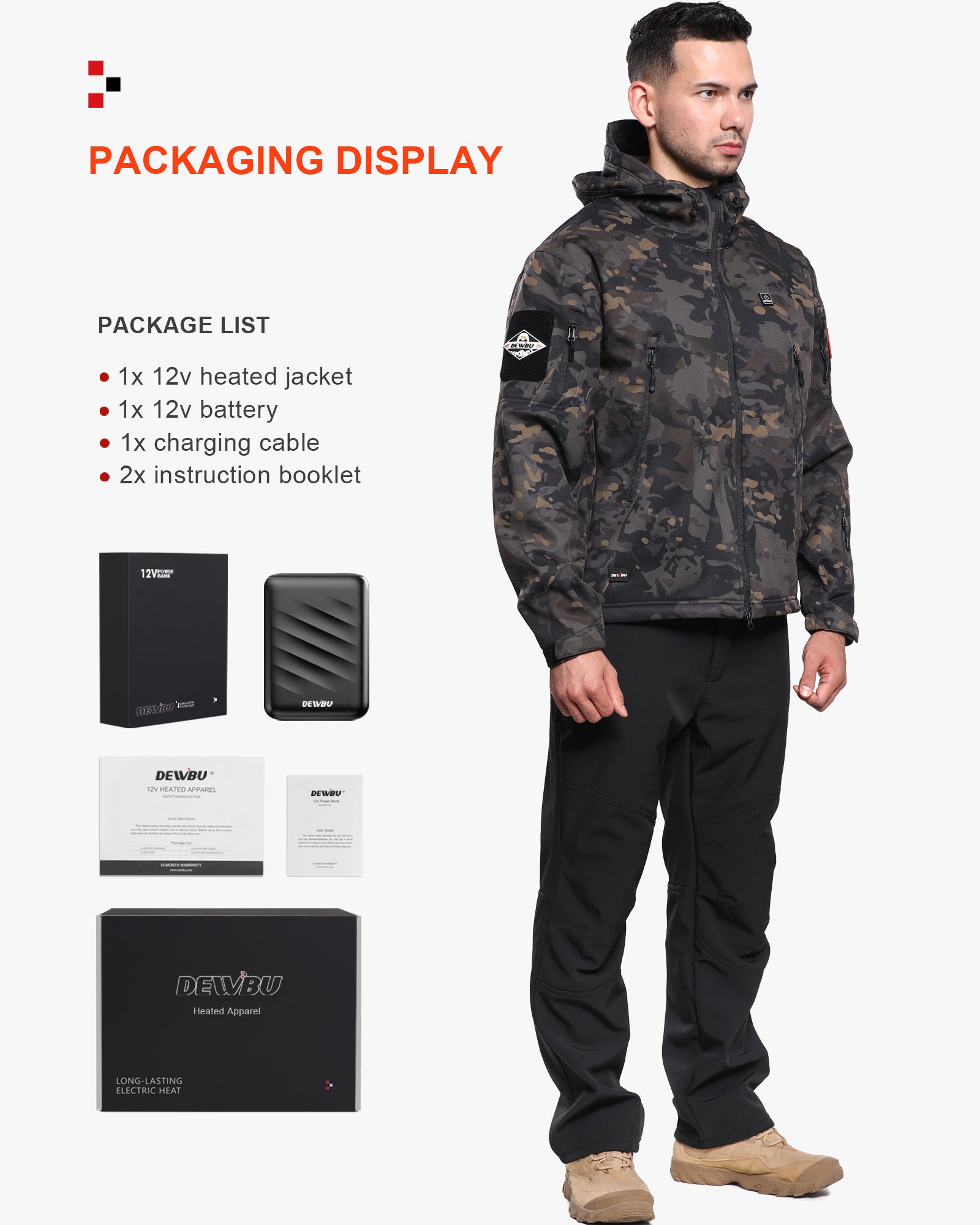 DEWBU heated coats are built with high-quality and professional water resistant soft shell materials with excellent breathability. They also have good tensile strength, scratch resistance and wind resistance. Heating elements and overall jacket structure are designed to endure routine hand or machine wash.