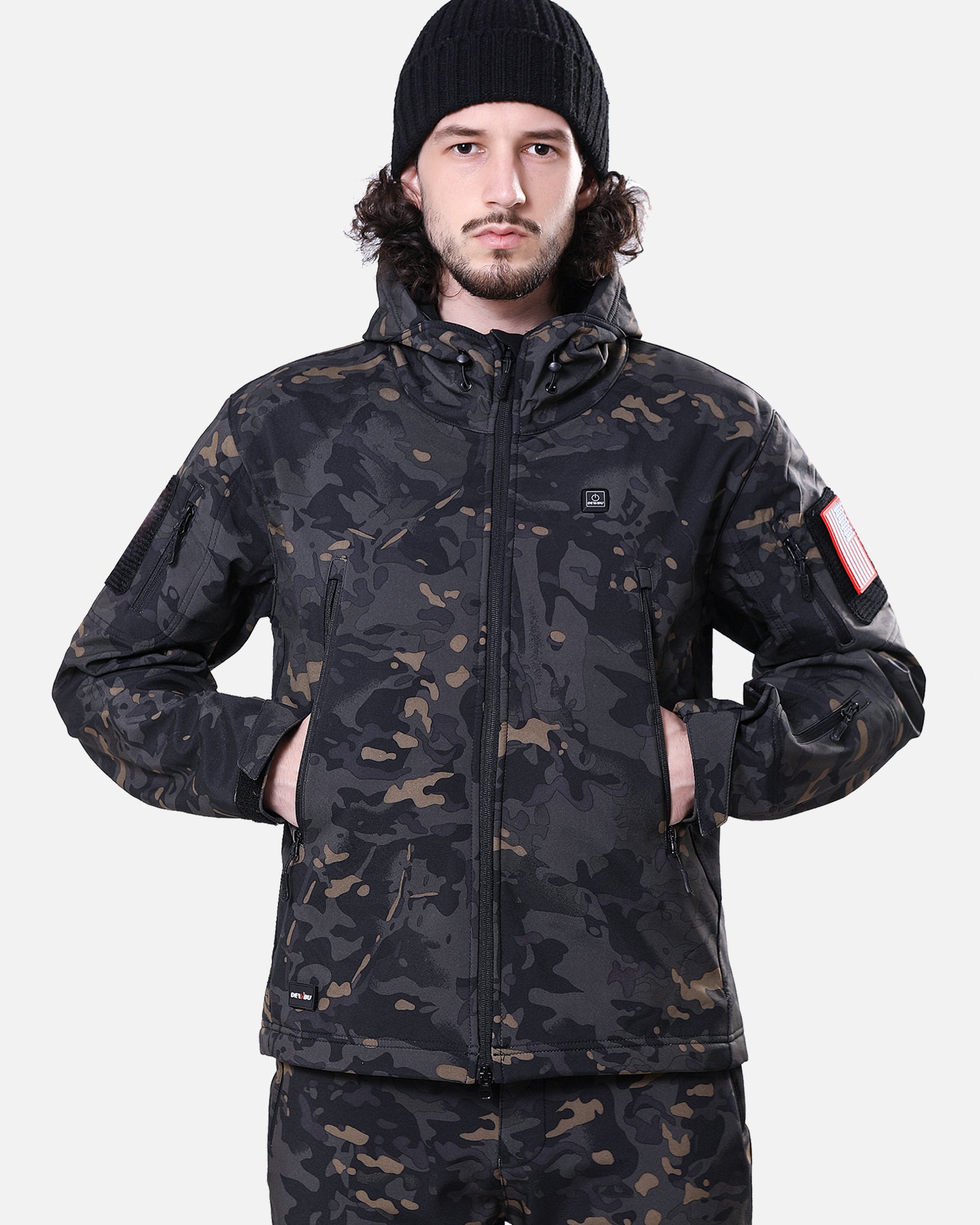 Men's Soft Shell Heated Jacket With 12V Battery Pack - Camo Black