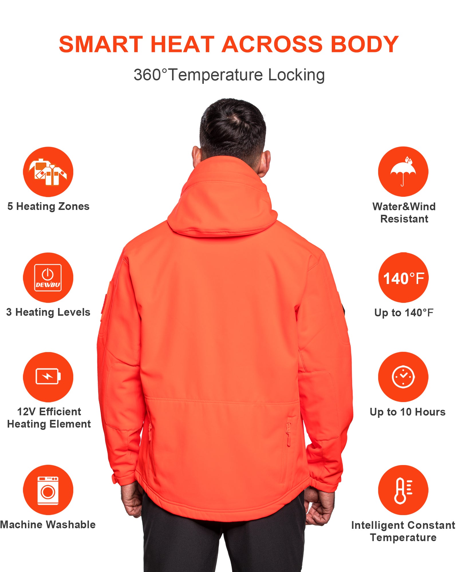 Men's Soft Shell Heated Jacket With 12V Battery Pack - Blaze Orange
