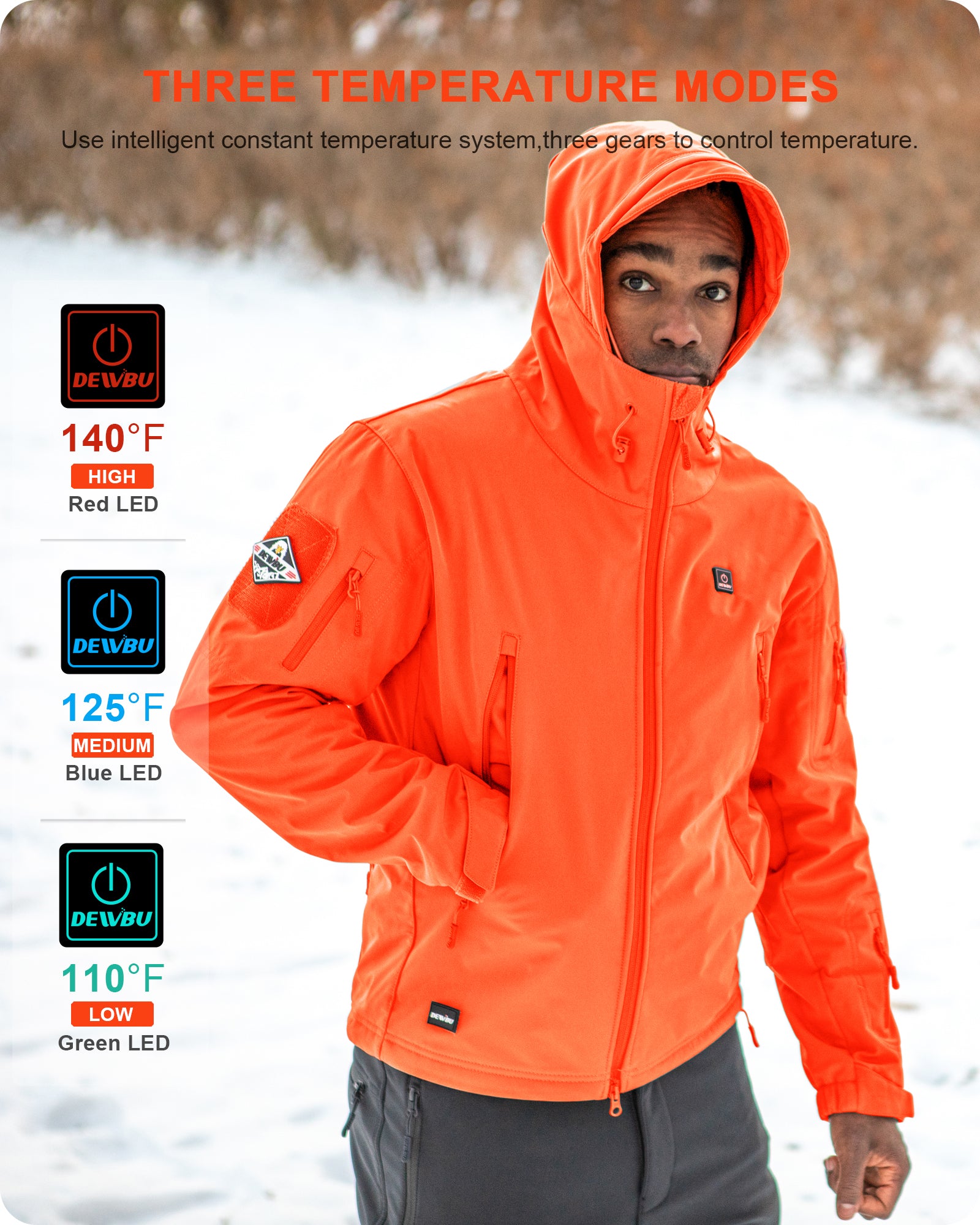 DEWBU heated coats are built with high-quality and professional water resistant soft shell materials with excellent breathability. They also have good tensile strength, scratch resistance and wind resistance. Heating elements and overall jacket structure are designed to endure routine hand or machine wash.
