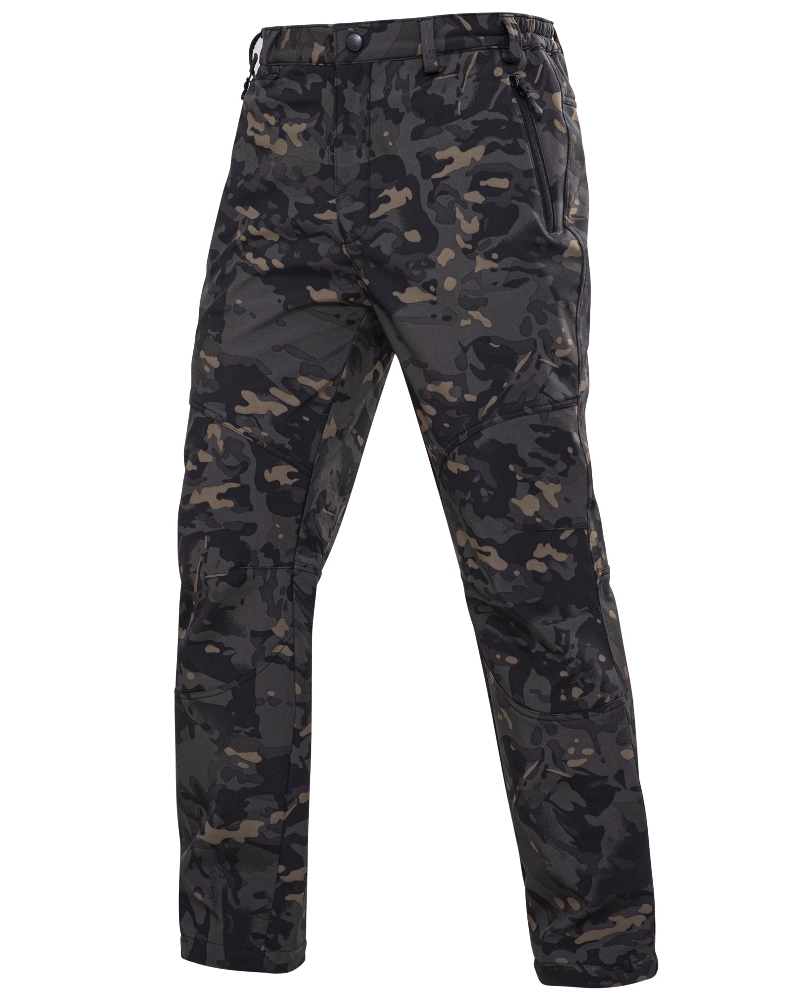Men's Soft Shell Heated Pants with 12V Battery Pack Fleece Lined - Black Camo