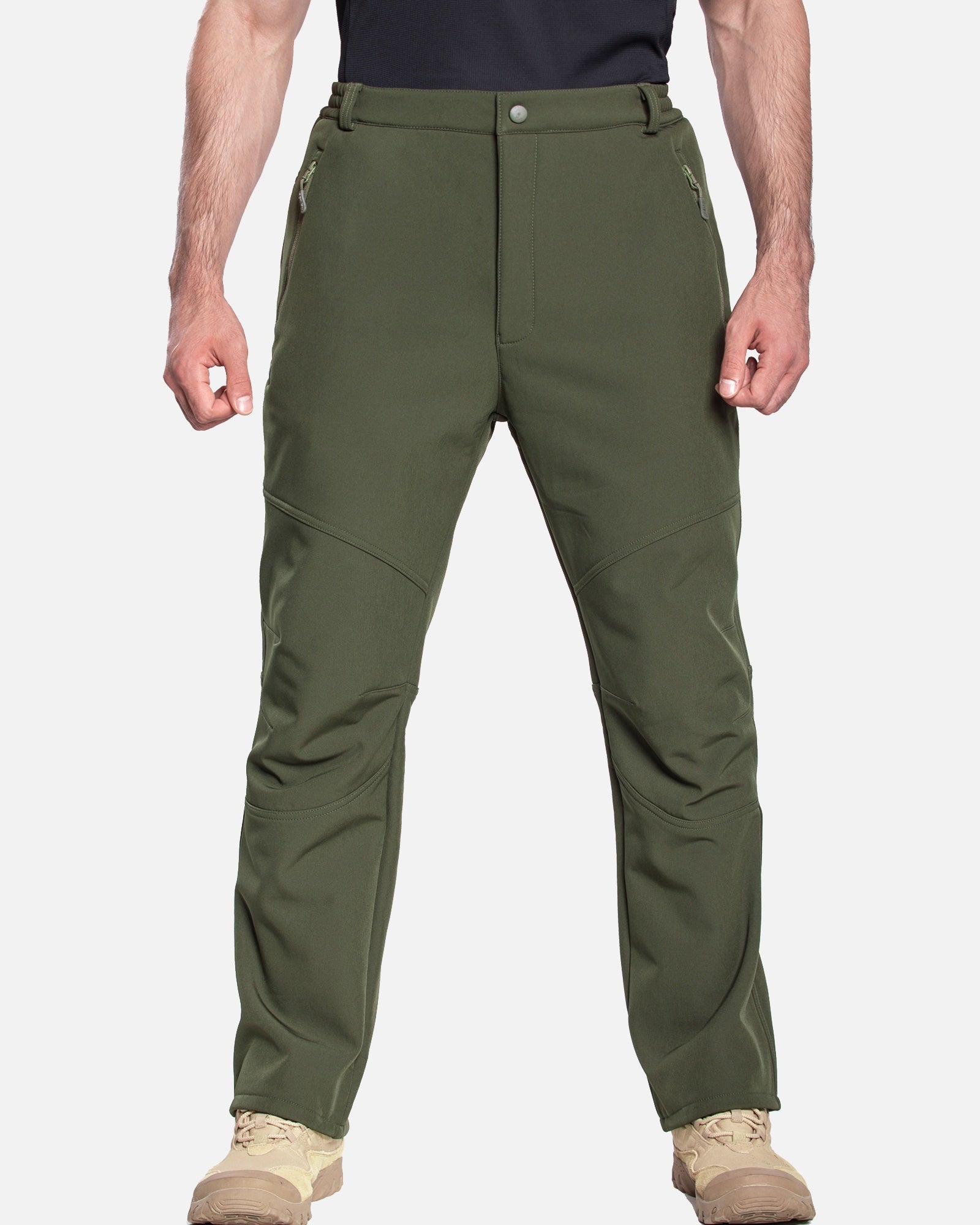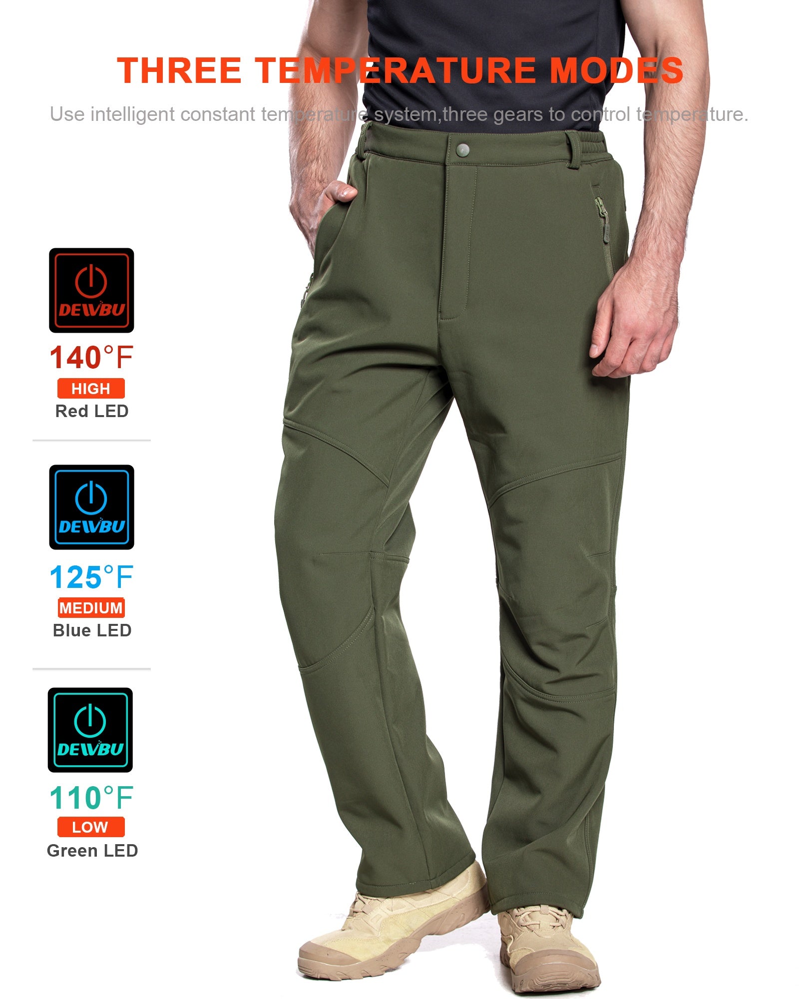 Men's Soft Shell Heated Pants with 12V Battery Pack Fleece Lined - Olive Green