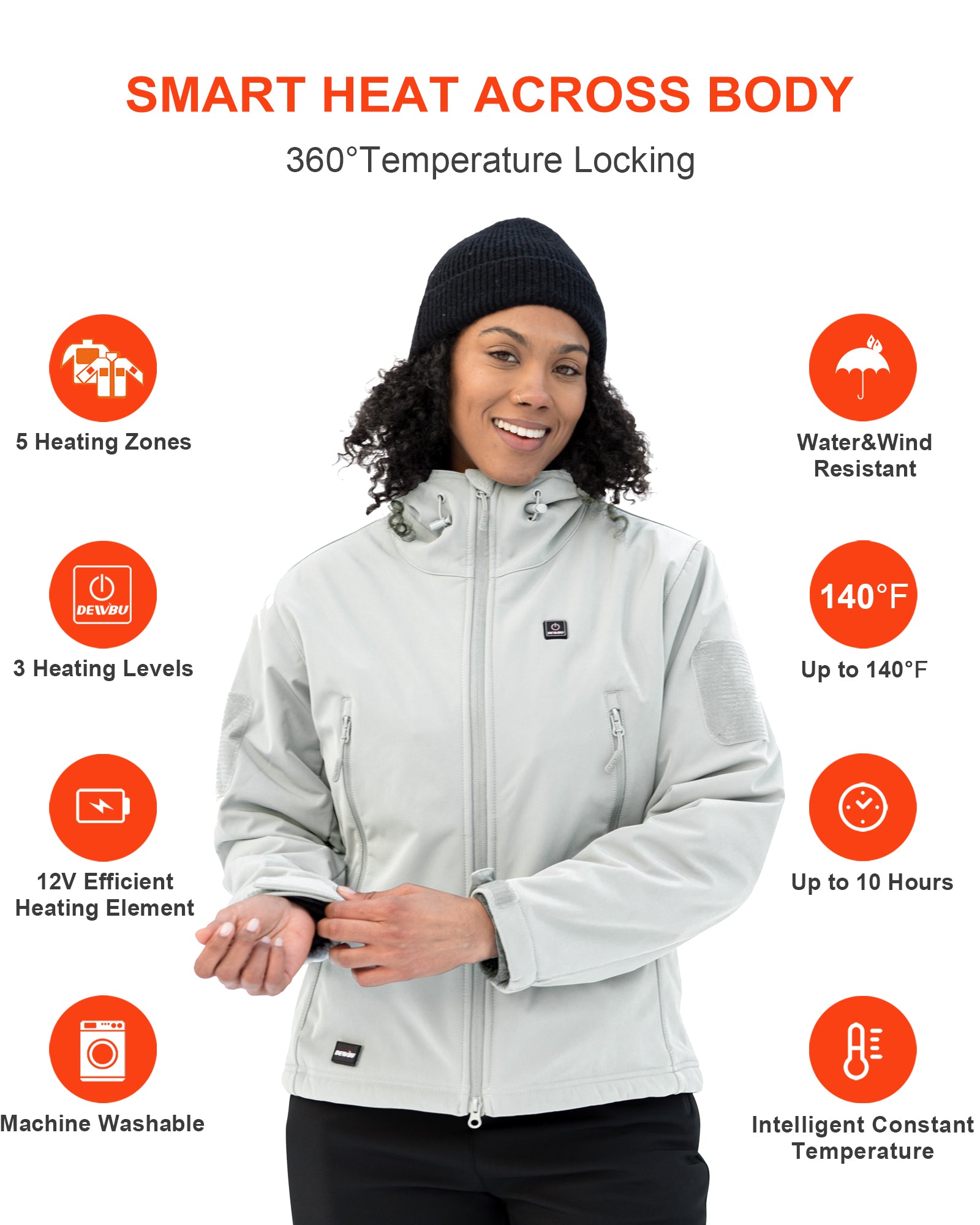 DEWBU heated coats are built with high-quality and professional water resistant soft shell materials with excellent breathability. They also have good tensile strength, scratch resistance and wind resistance. Heating elements and overall jacket structure are designed to endure routine hand or machine wash.