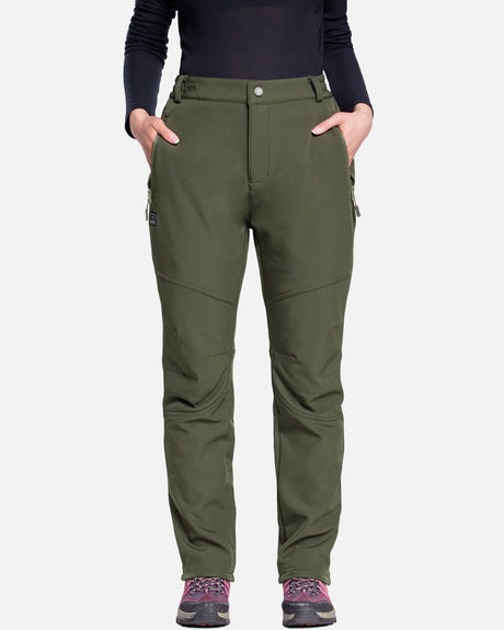 Women's Soft Shell Heated Pants with 12V Battery Pack Fleece Lined -Olive Green
