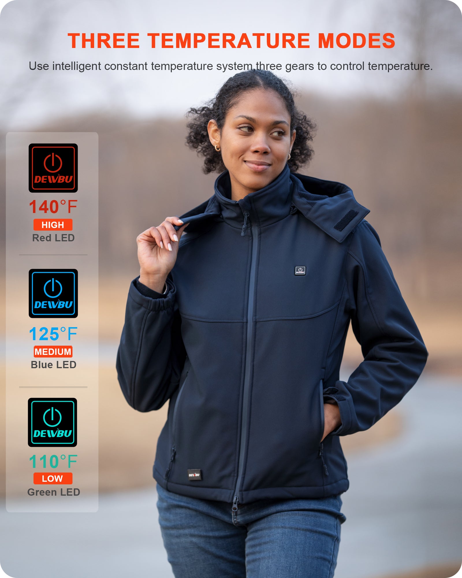 DEWBU heated coats are built with high-quality and professional water-resistant softshell materials and a waterproof zipper. They also have good tensile strength, scratch resistance, and wind resistance. Heating elements and overall jacket structure are designed to endure routine hand or machine wash.