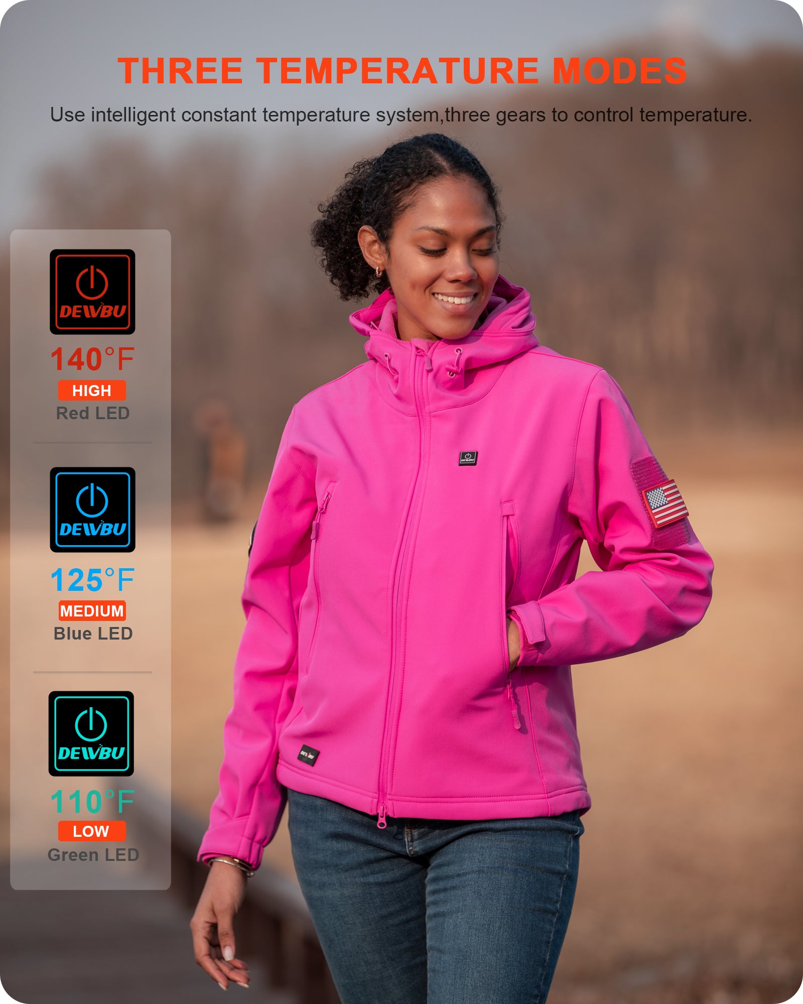 Women's Soft Shell Heated Jacket With 12V Battery Pack - Rose Red